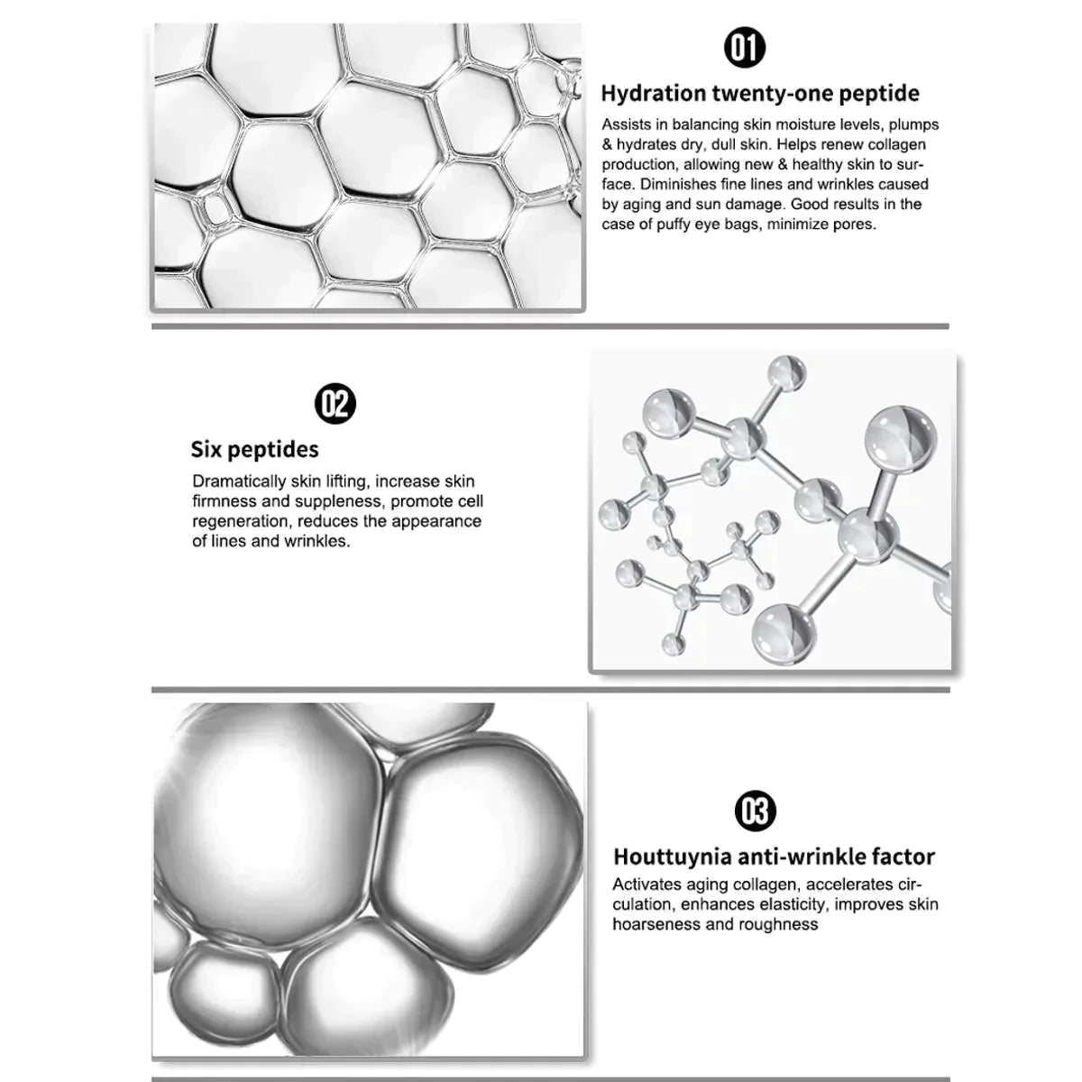 Ingredient: Six peptide,Hyaluronic acid,Peptides,Vitamin C,Glycerin,